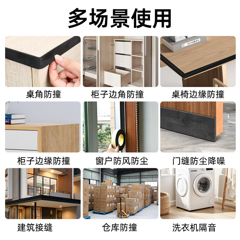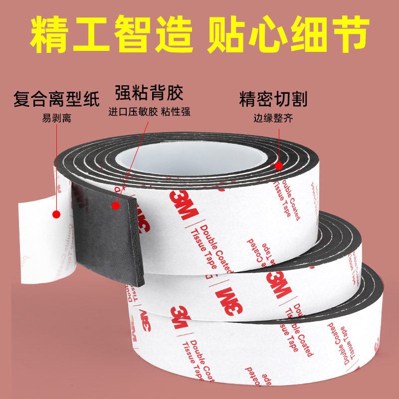3m单面黑色EVA加厚高密度海绵胶带减震棉垫片止震防撞耐磨隔音棉吸音自粘缓冲贴硬泡棉板材料缝隙填补密封胶