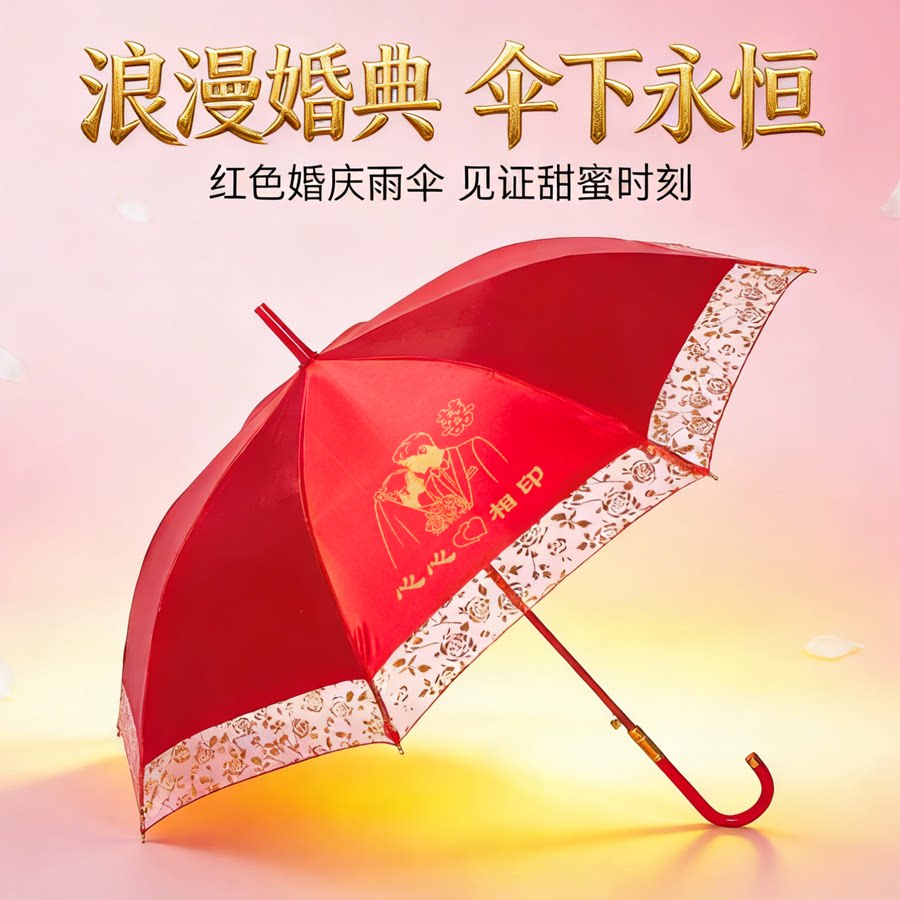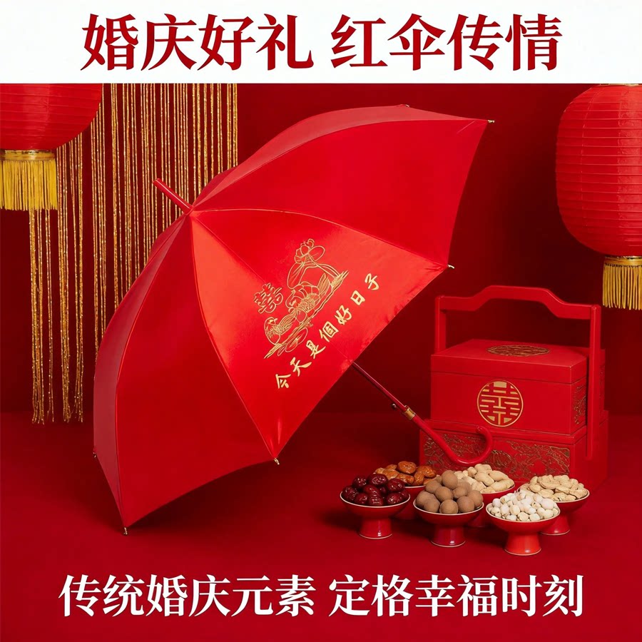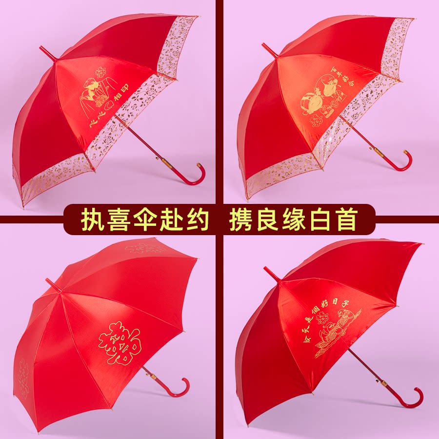 雨宾新娘红伞结婚伞中式接亲新娘出嫁雨伞新款喜庆用品婚礼长柄