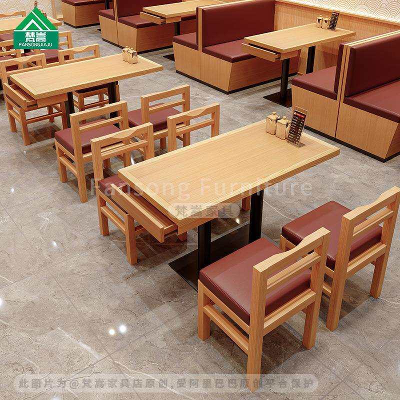 新中式茶餐厅实木餐椅商用火锅店靠墙卡座沙发饭店餐饮桌椅组合