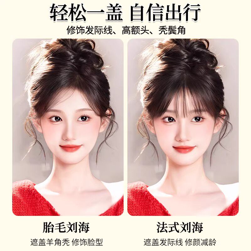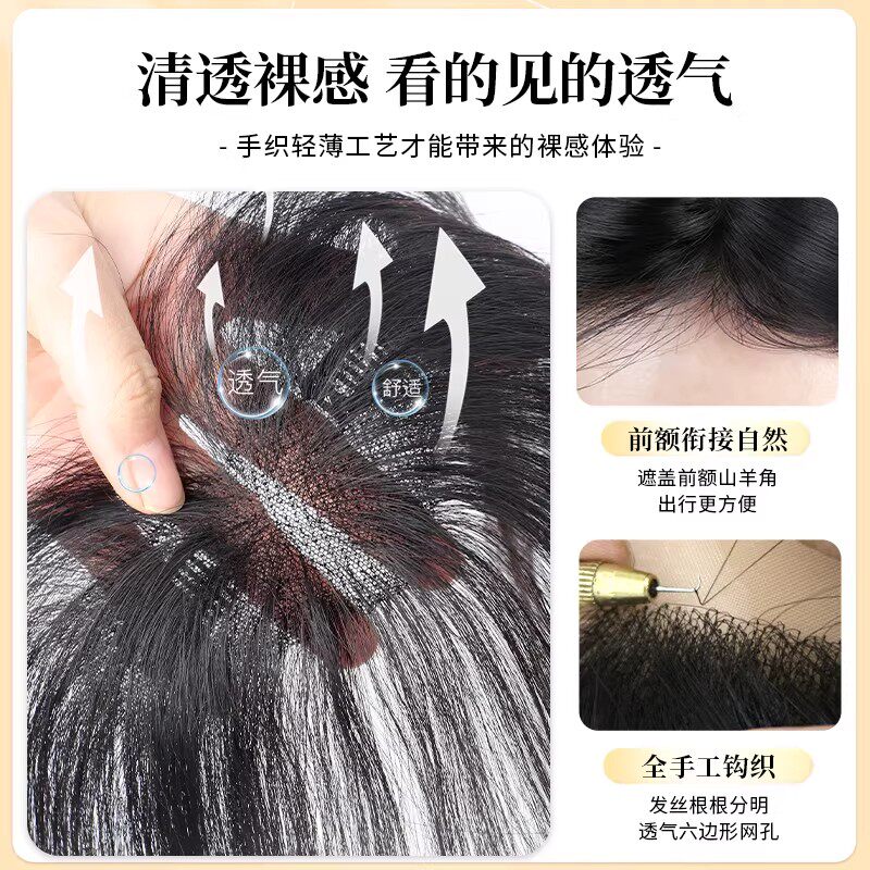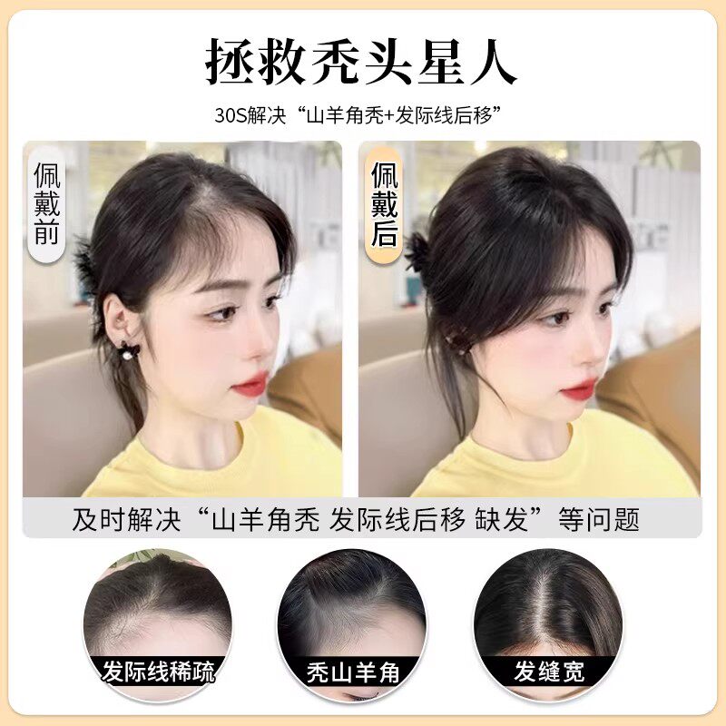 胎毛刘海假发女片头顶遮秃顶神器高颅顶蓬松真发无痕发际线假发贴