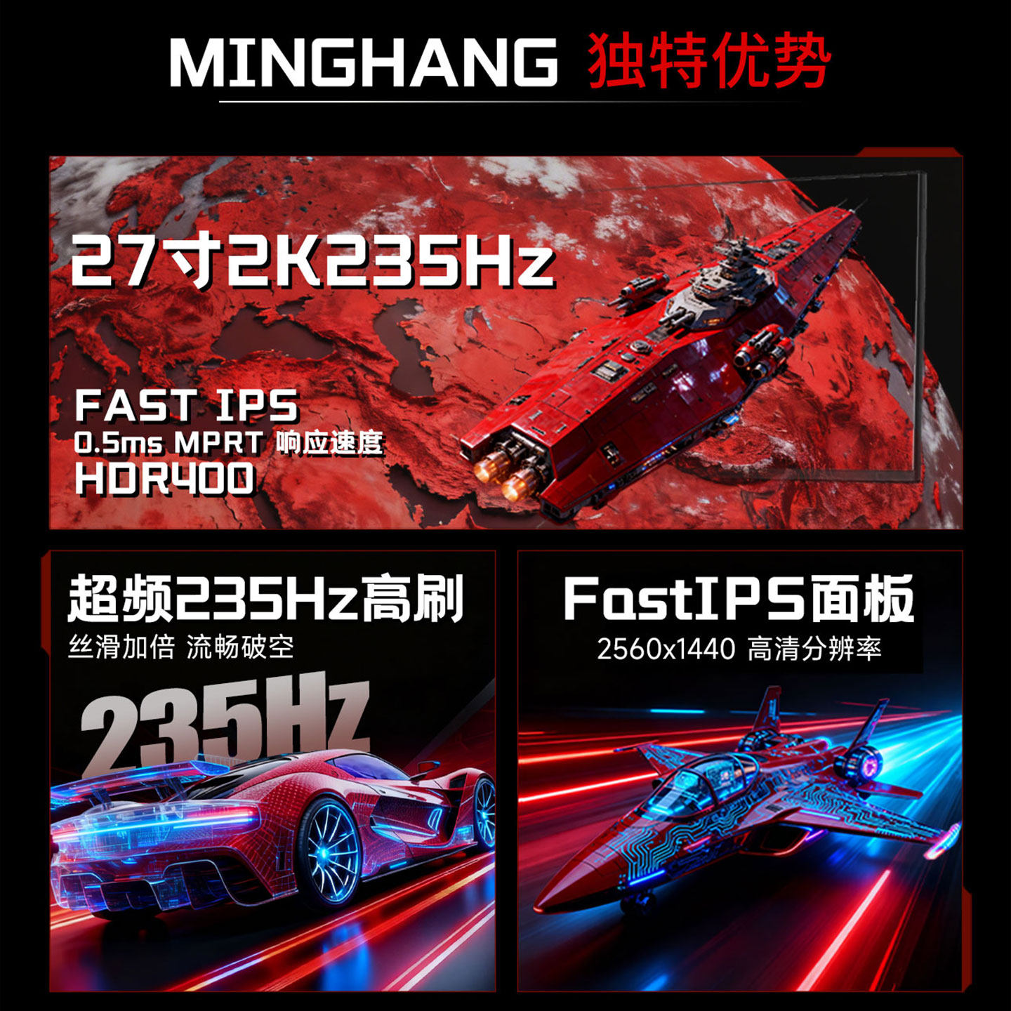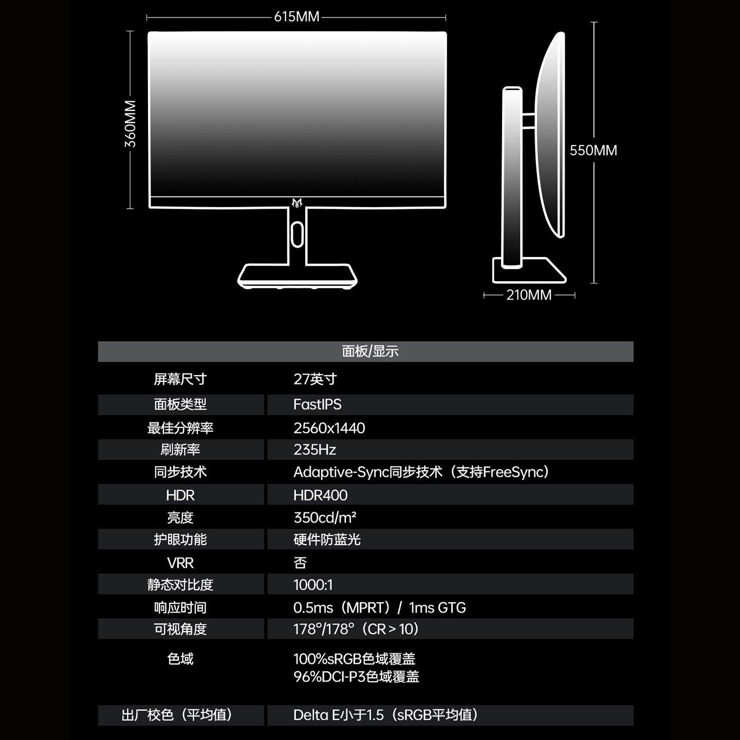 27英寸2K原生235hz职业电竞显示器1M疾速响应HDR400液晶显示屏IPS