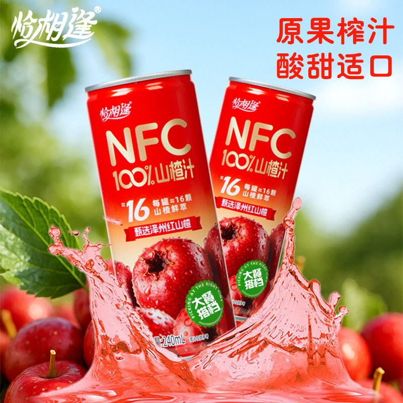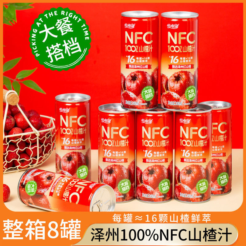 NFC100%山楂汁酸甜开胃促消化适口0脂0添加果汁饮料240ml*8罐整箱