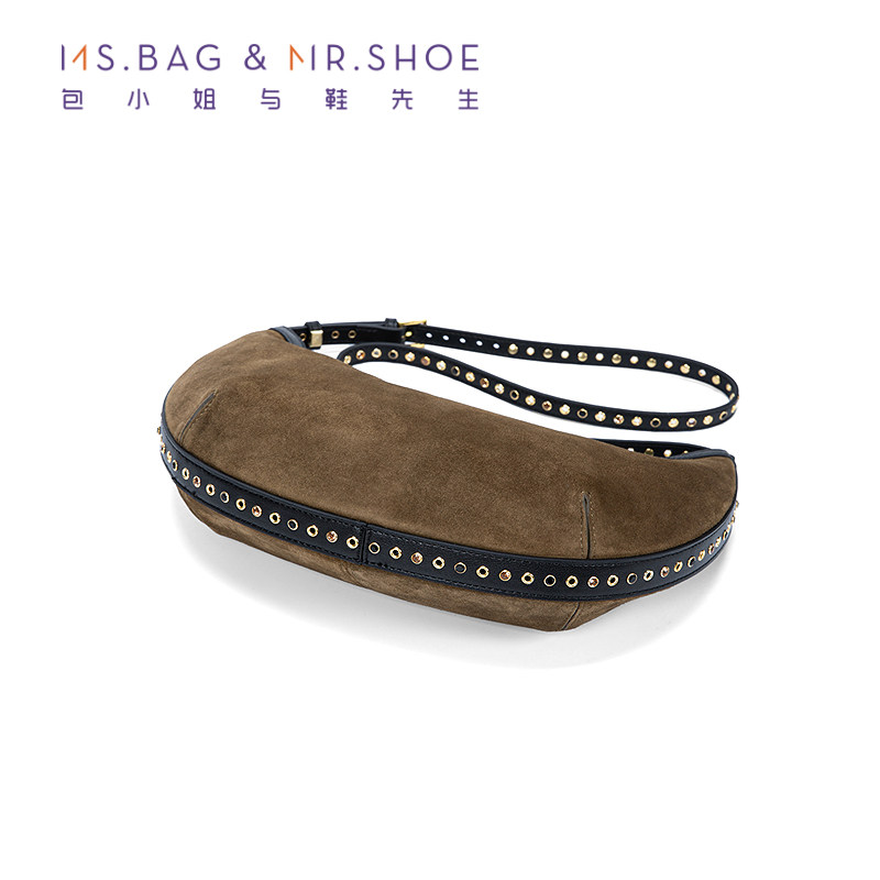 包小姐与鞋先生2026年春季新款湿野绿简约金属铆钉单肩包女262164
