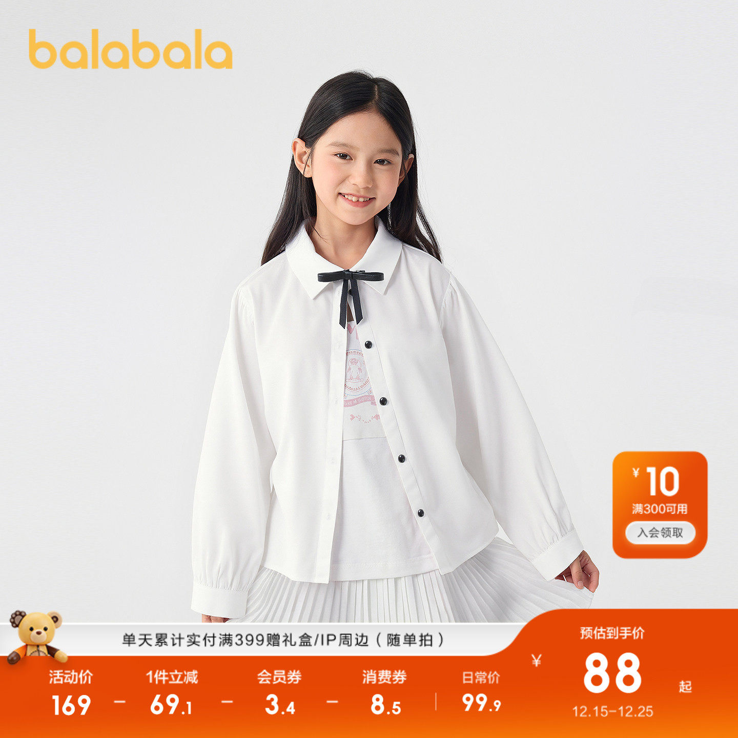 巴拉巴拉童装儿童长袖衬衫女童2025春秋装大童学院风白衬衣时尚潮