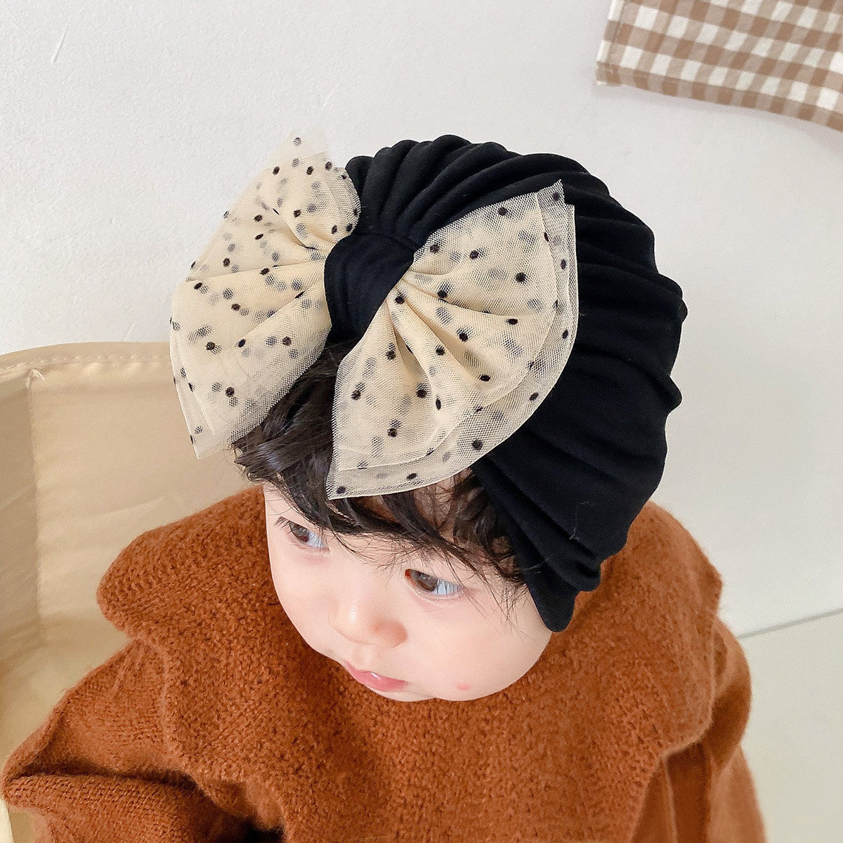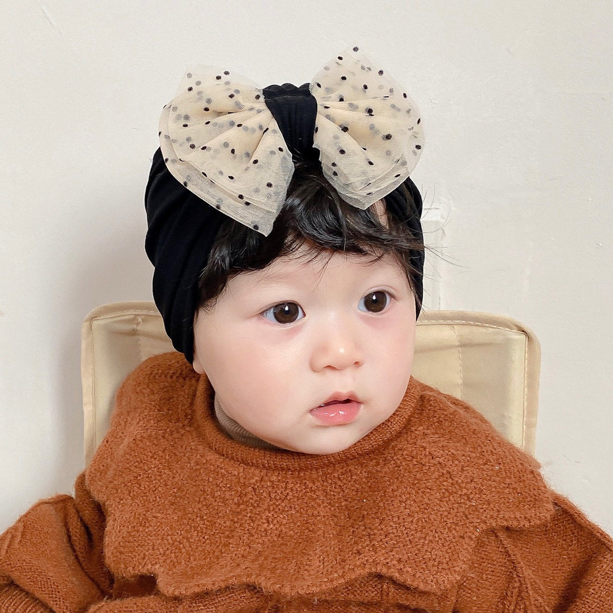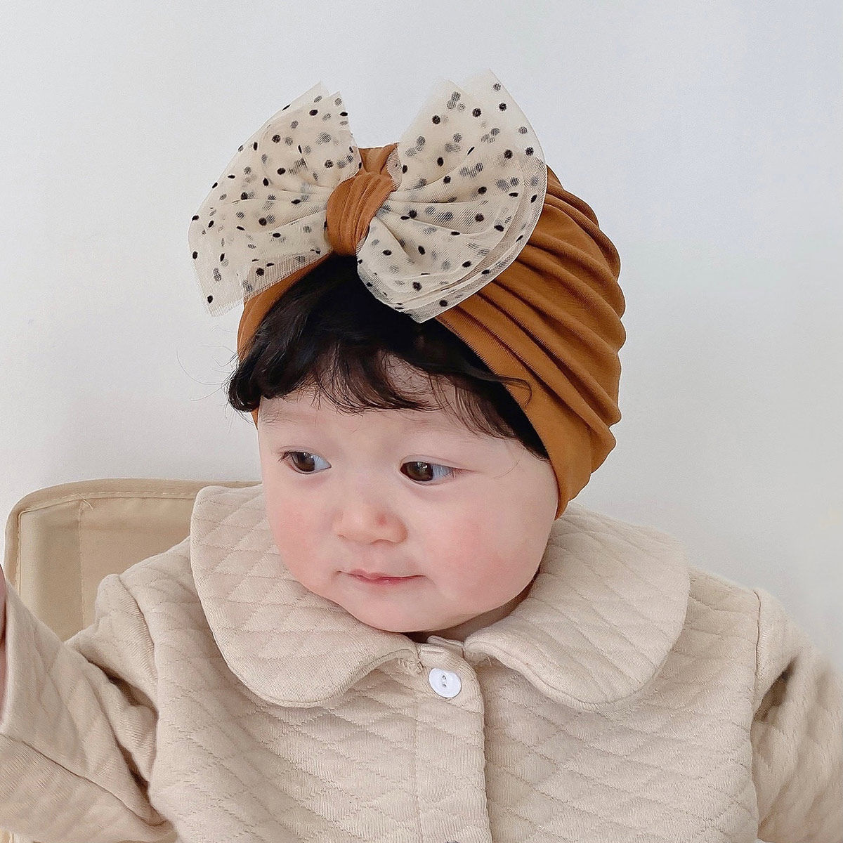 婴儿帽子春秋薄款可爱网纱蝴蝶结莫代尔新生儿女宝宝包头帽胎帽冬