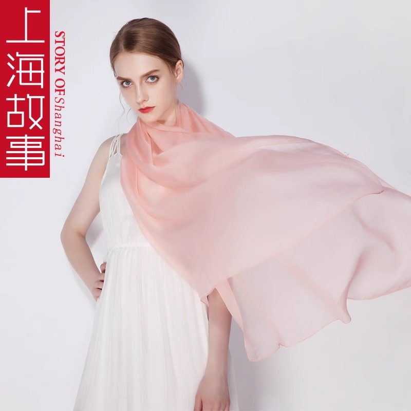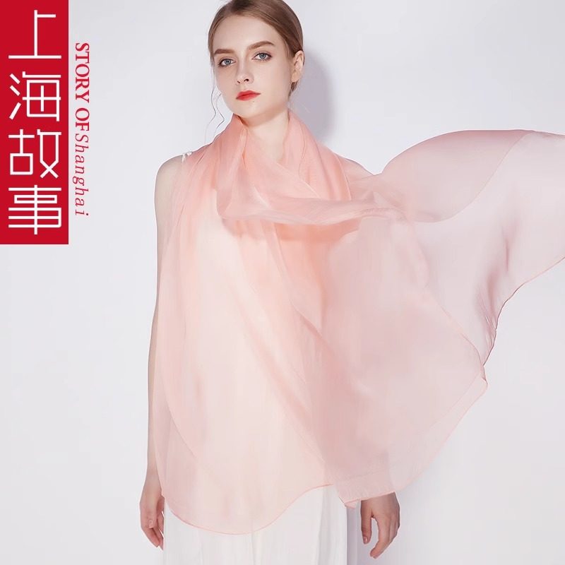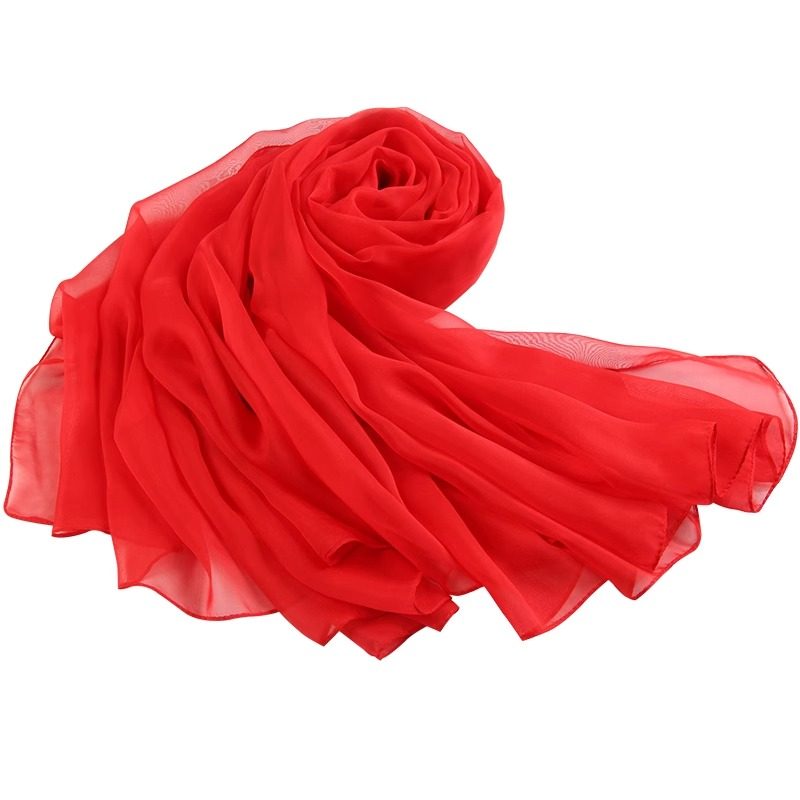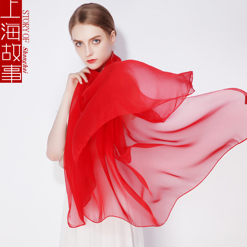 上海故事红色舞蹈丝巾夏季薄款防晒披肩女2025新款纯色长条纱巾