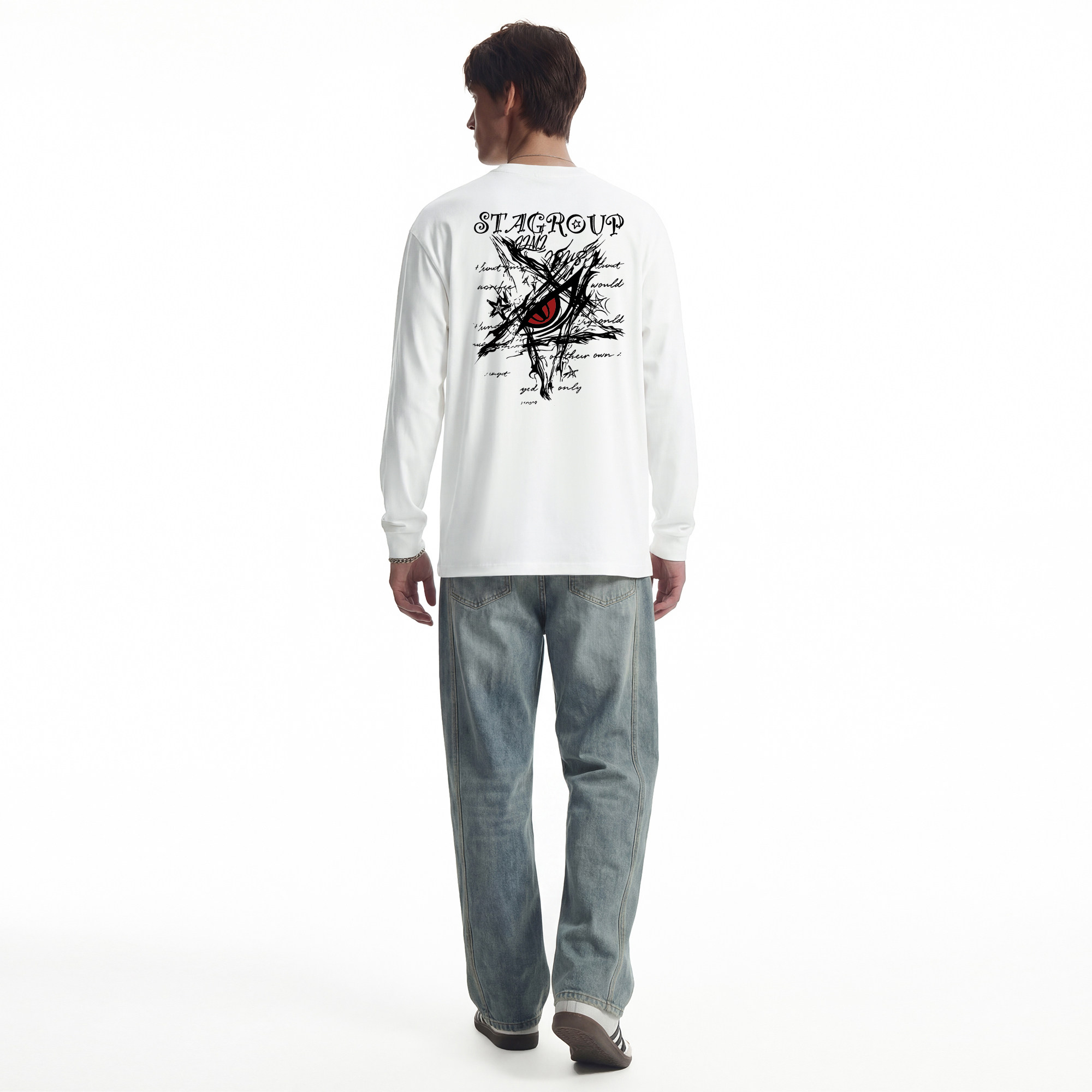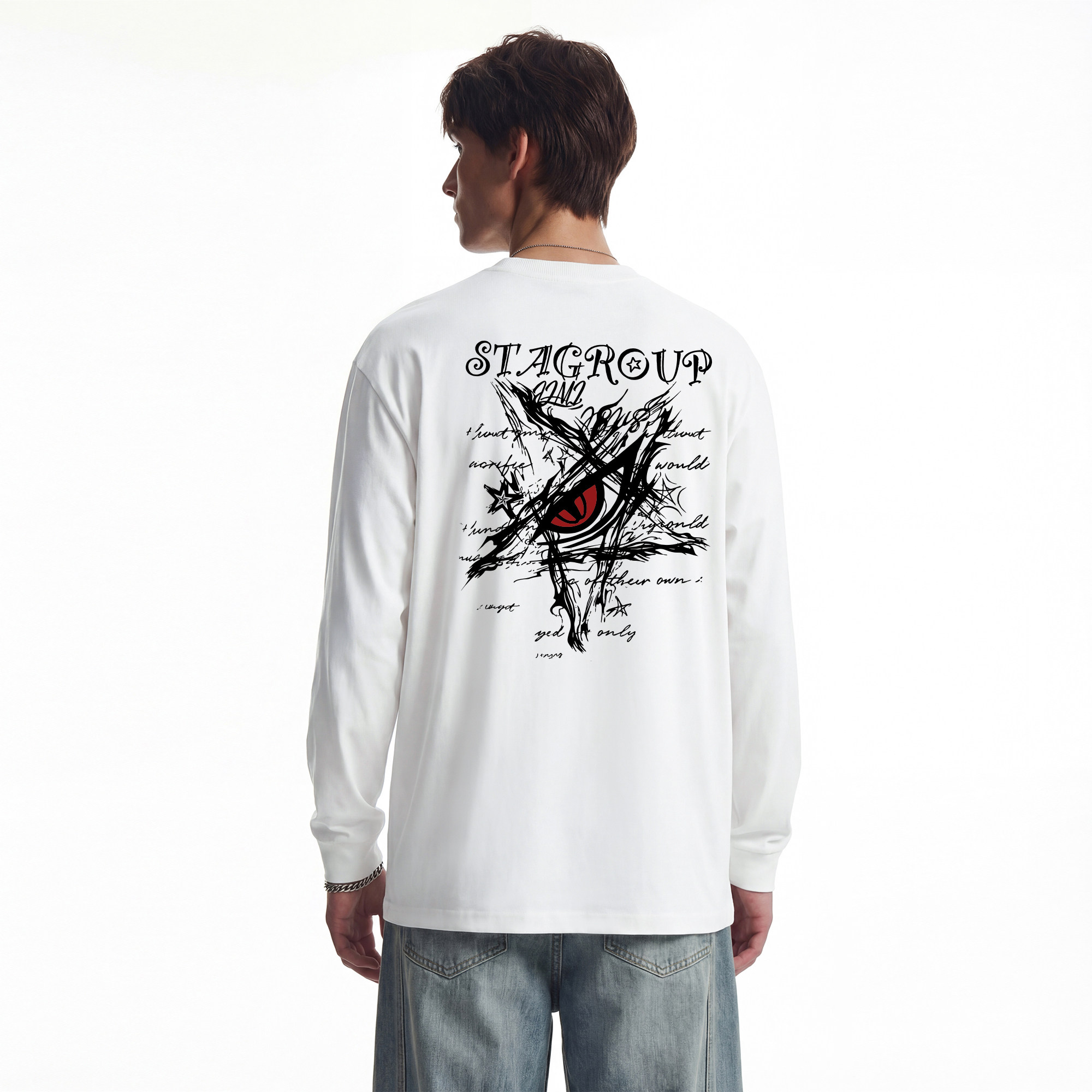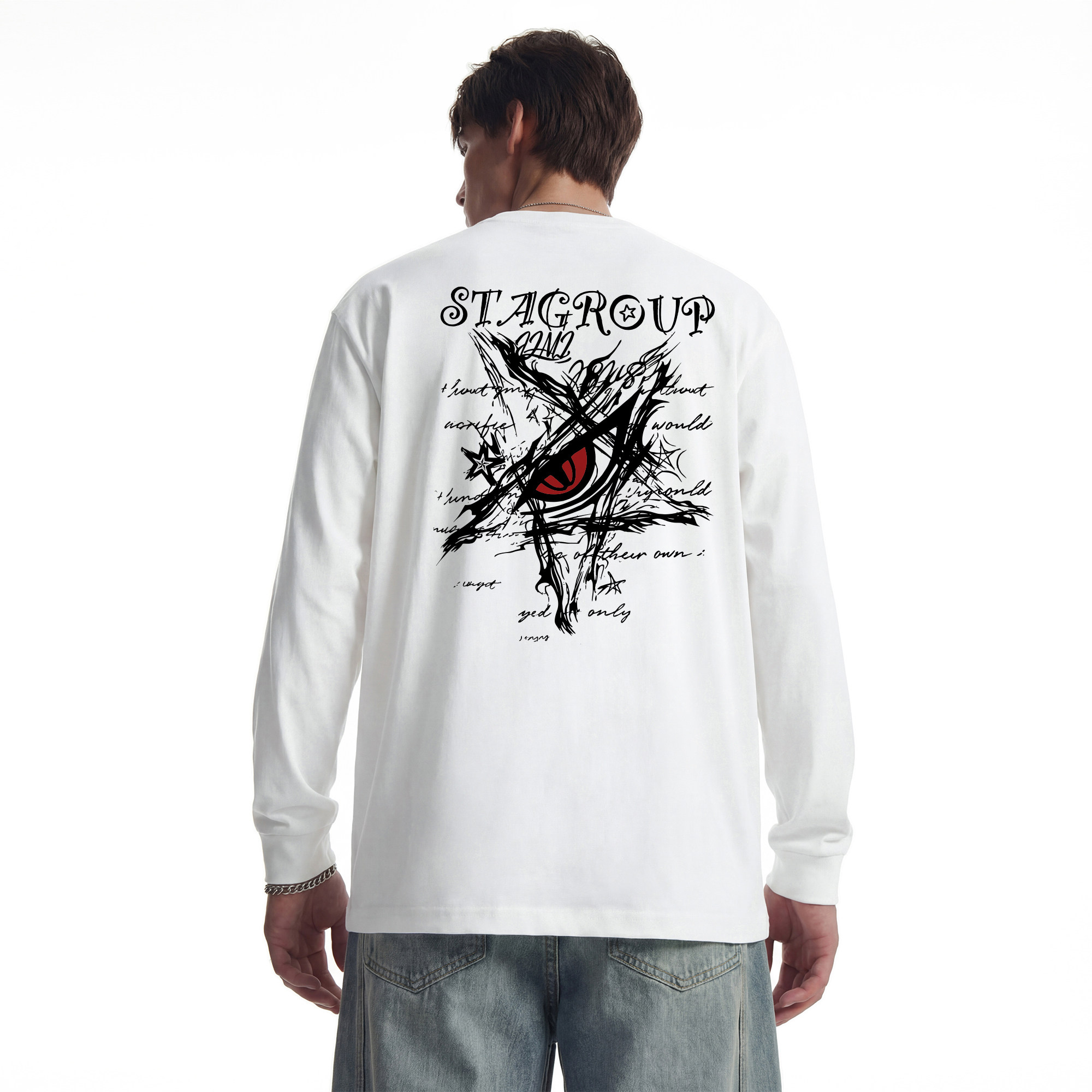 STA旗舰店美式恶魔眼印花圆领长袖男女潮牌复古高街黑色t恤卫衣