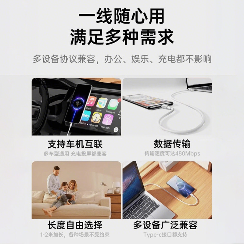 图拉斯数据线适用苹果充电线iPhone17快充13器14ProMax手机15typec16Lightning正品iPad12接口usb2米to车载11