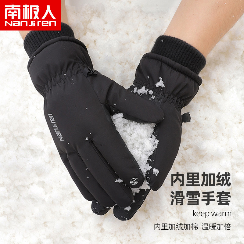 南极人滑雪手套男冬季户外保暖加绒厚骑行棉手套摩托车防寒风女A