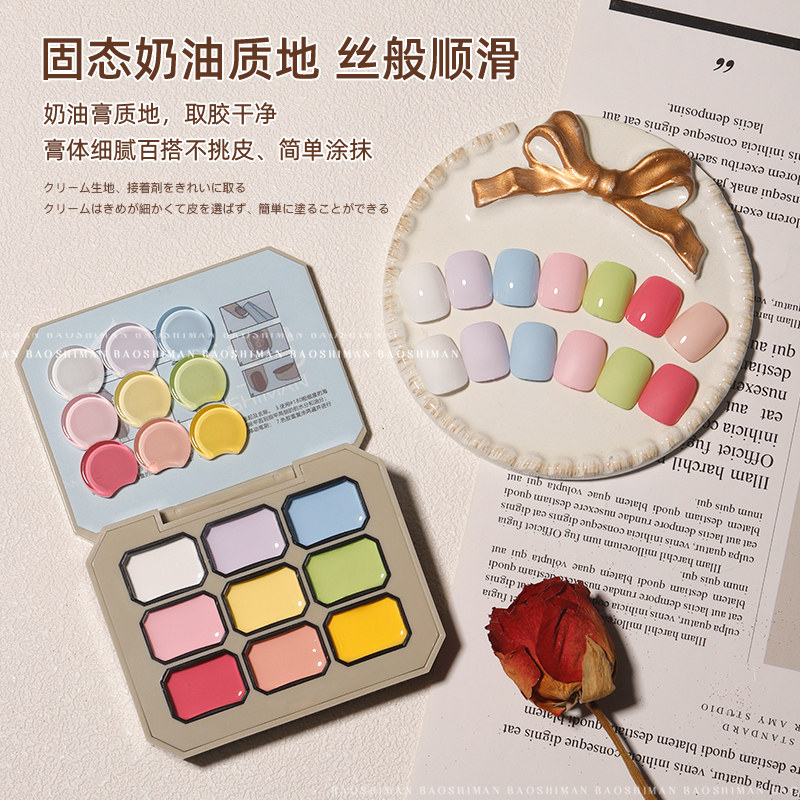 美甲胶马卡龙新款九色固态胶盘甲油胶九宫格套装彩色拍拍胶甲油胶