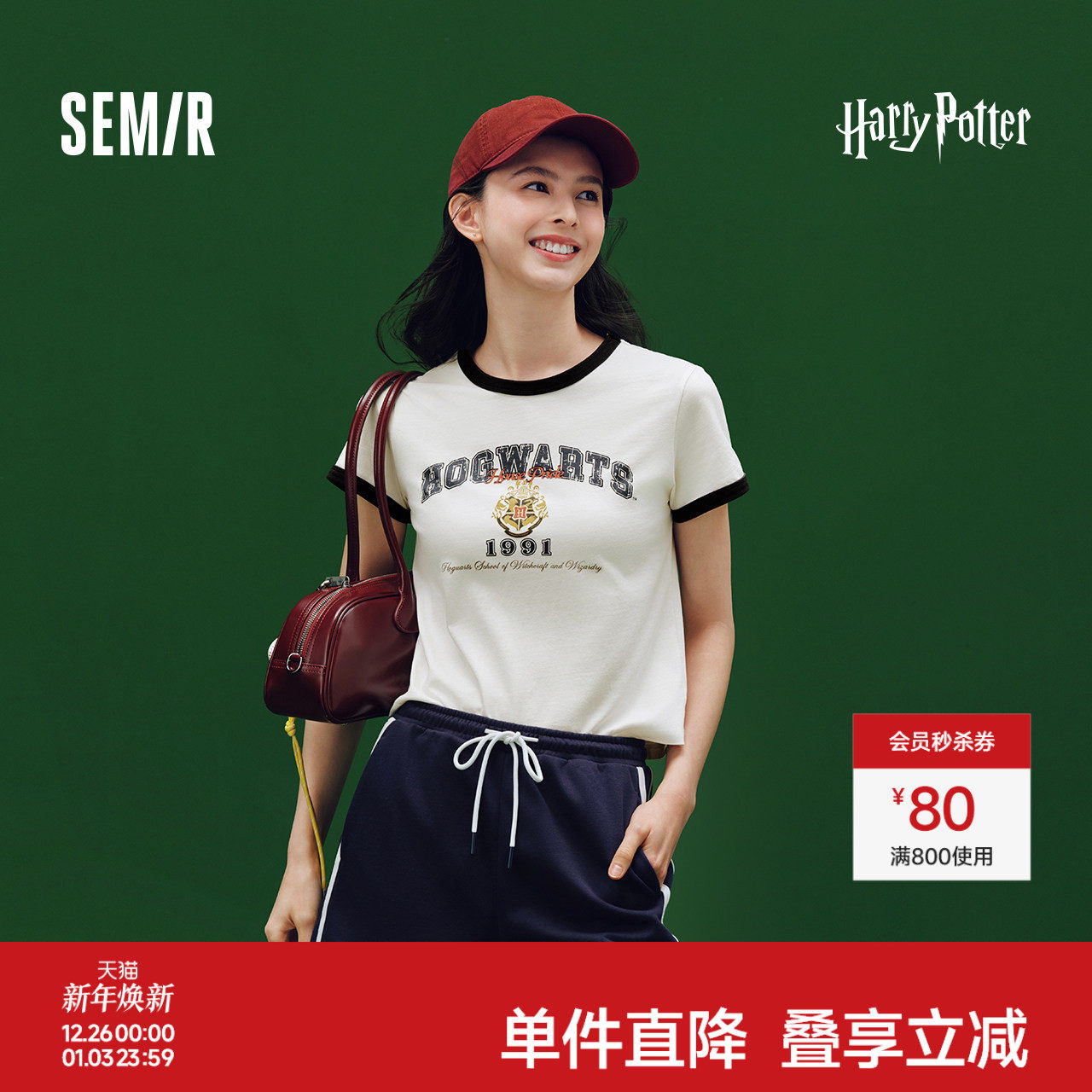 [商场同款]森马哈利波特联名短袖T恤女短款撞色2025新款修身夏装