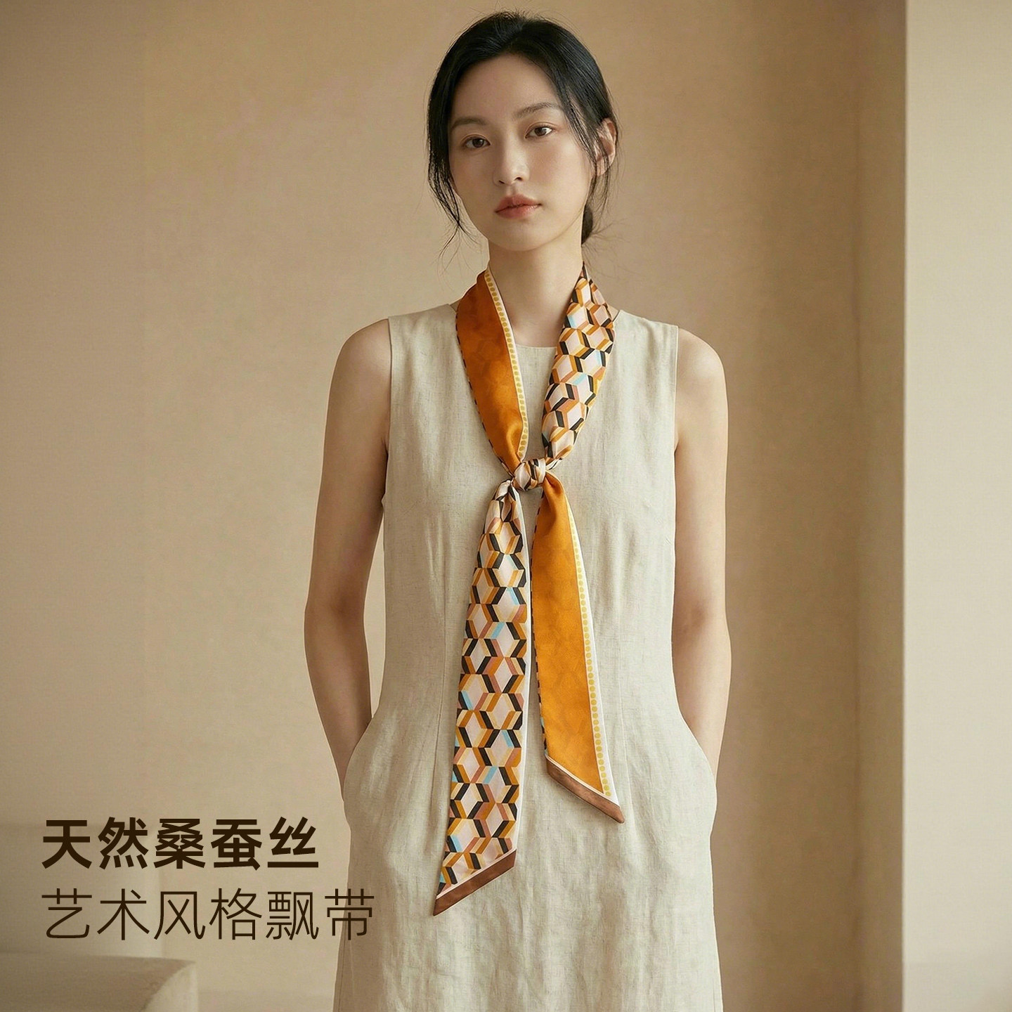 高级感丝巾女小围巾女春秋季棉麻手感脖子围脖小方巾新款日系优雅