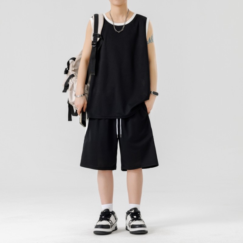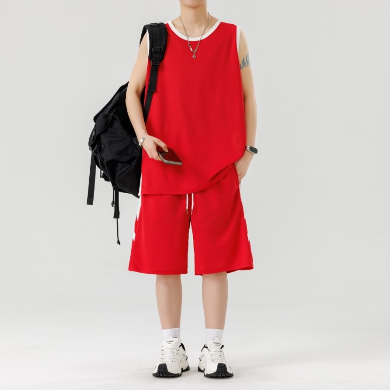 回力冰丝套装男夏季薄款速干无袖运动坎肩背心短袖T恤短裤篮球服