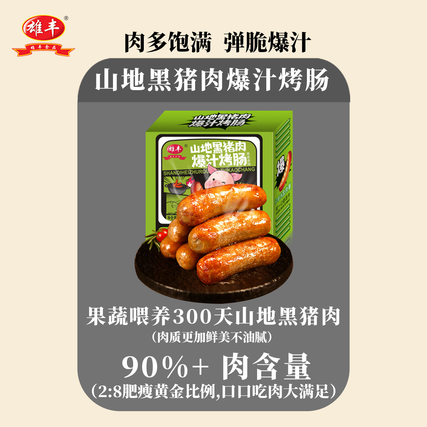 【主播推荐】雄丰山地黑猪肉爆汁烤肠5盒共40根肉肠香肠热狗早餐