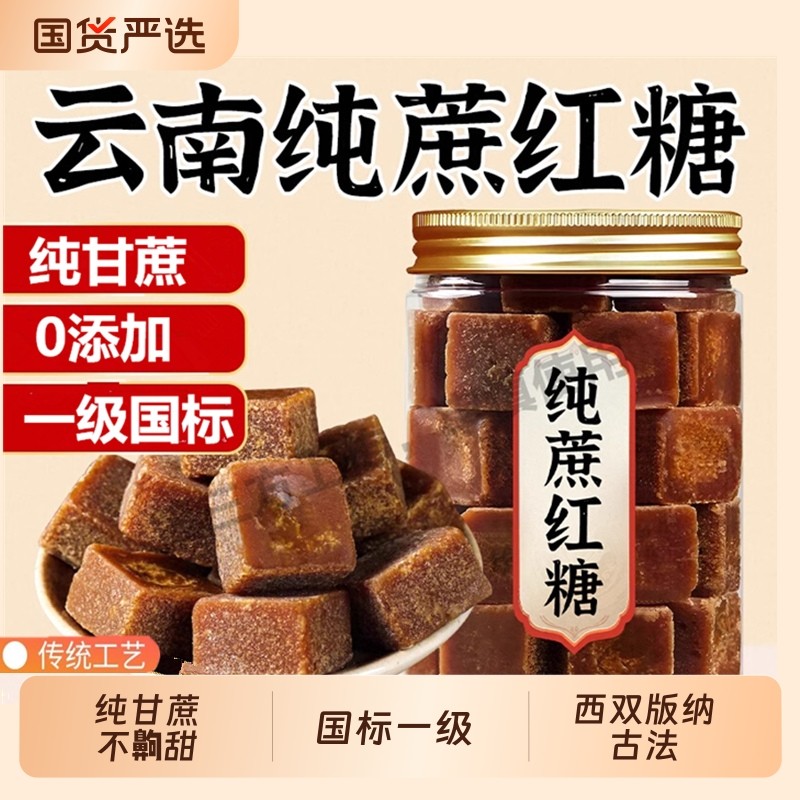 云南红糖一级纯正甘蔗糖老红糖黑糖姜茶用旗舰正品罐装古法国货