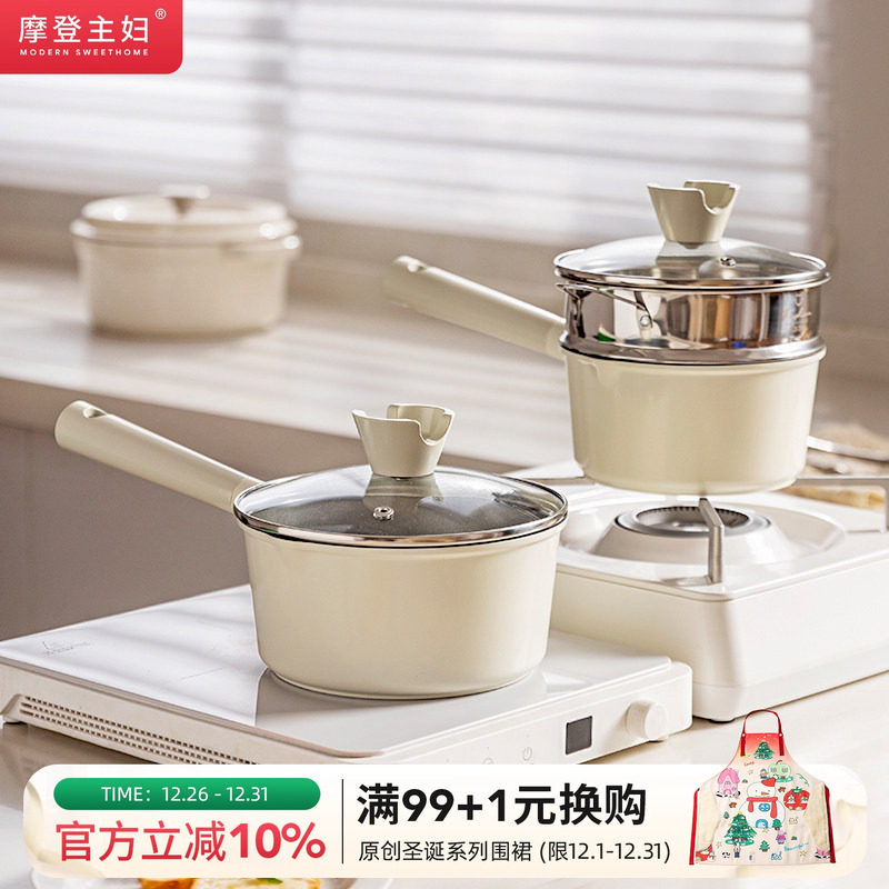 摩登主妇钛陶瓷奶锅宝宝辅食锅不粘锅蒸煮一体汤锅泡面一人食小锅