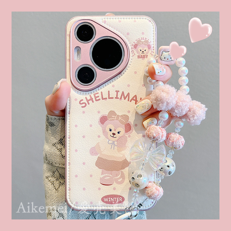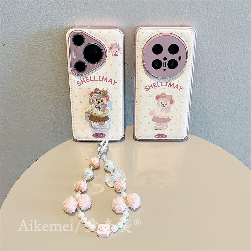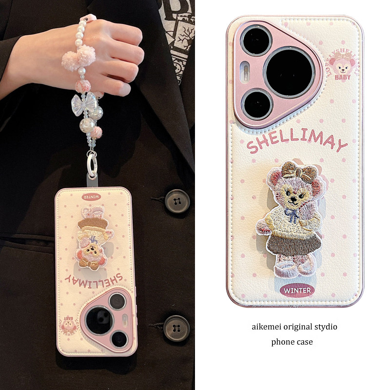 适用华为pura70pro+手机壳卡通可爱pura80pro+气垫皮纹雪莉玫Pura70Ultra刺绣折叠支架mate70pro链条防摔女款