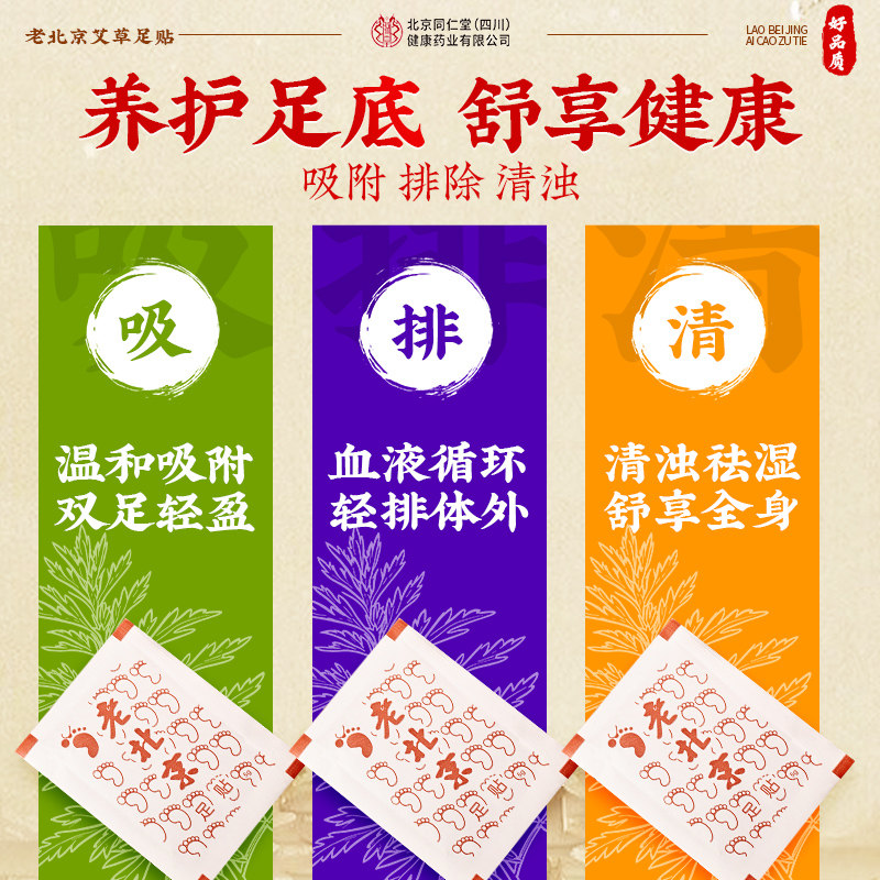老北京艾草足贴祛寒去湿气排毒体内湿寒助睡眠暖脚神器官方旗舰店