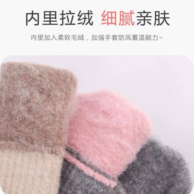 保暖针织触屏手套女士秋冬季保暖户外防风加绒韩版可爱防寒手套