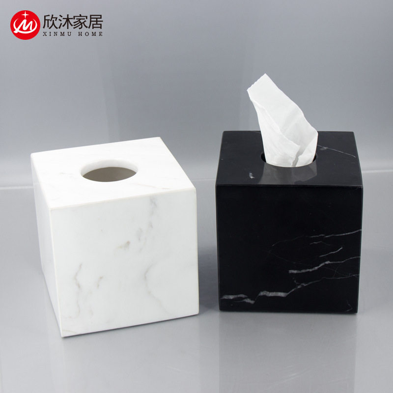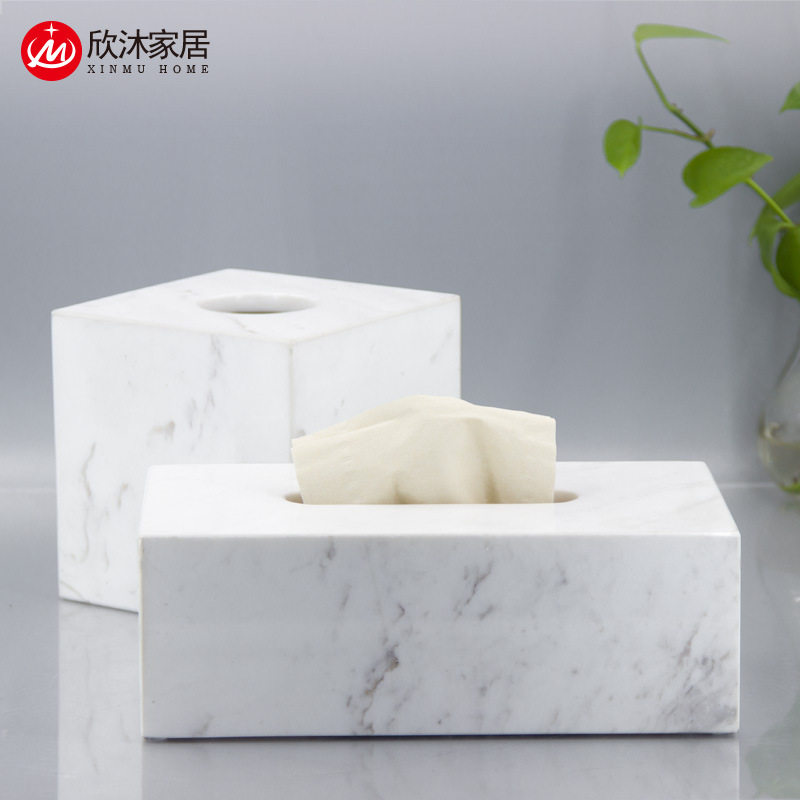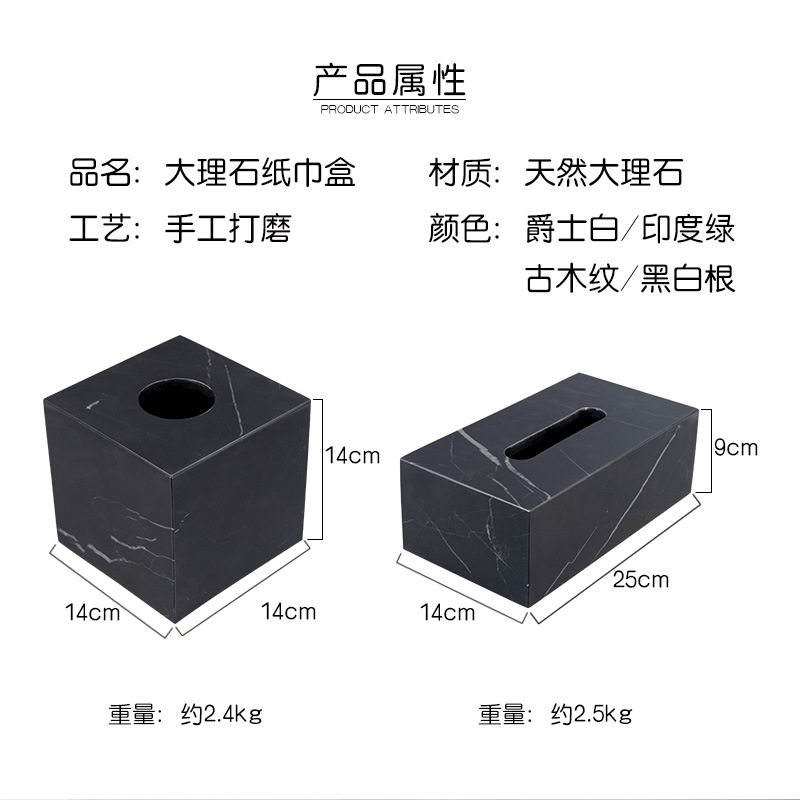 北欧现代天然大理石纸巾盒抽纸盒轻奢酒店样板房摆件创意工艺品