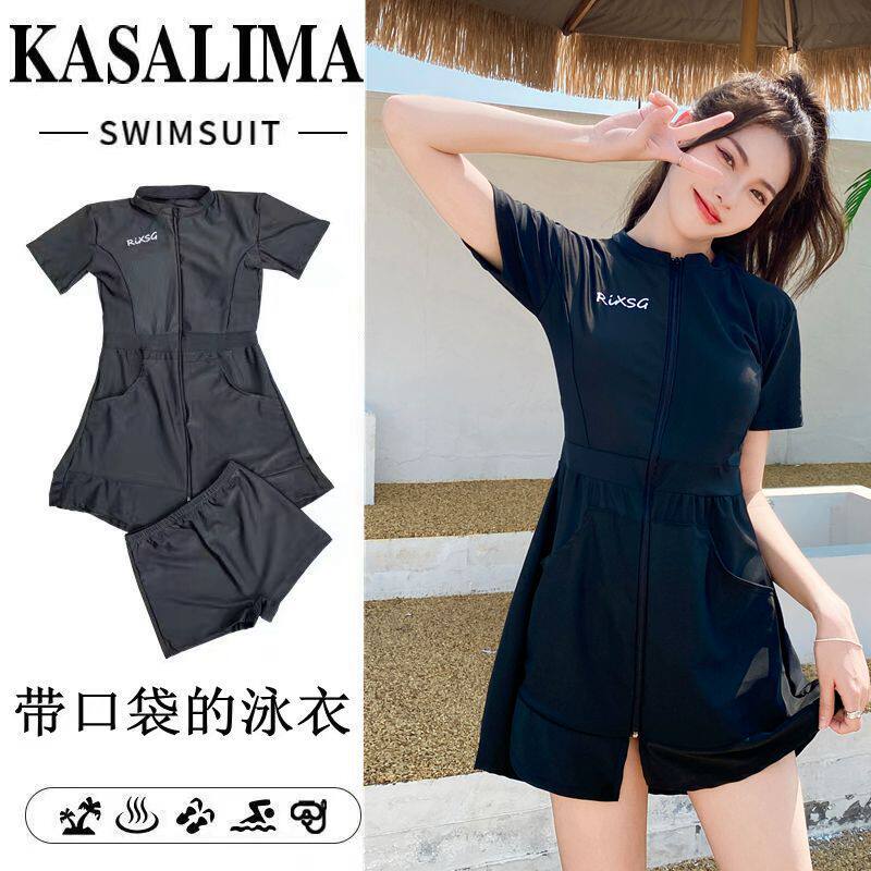 新款游泳衣 带口袋分体裙式遮肚显瘦保守泳衣小胸聚拢泳装泳衣厂
