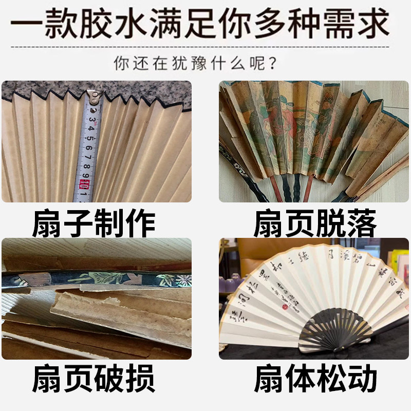 扇子胶防水粘手工折叠团扇舞蹈纸扇制作文玩折扇胶糊玉竹丝稠扇骨强力万能修补扇面扇纸布料脱胶专用透明胶水