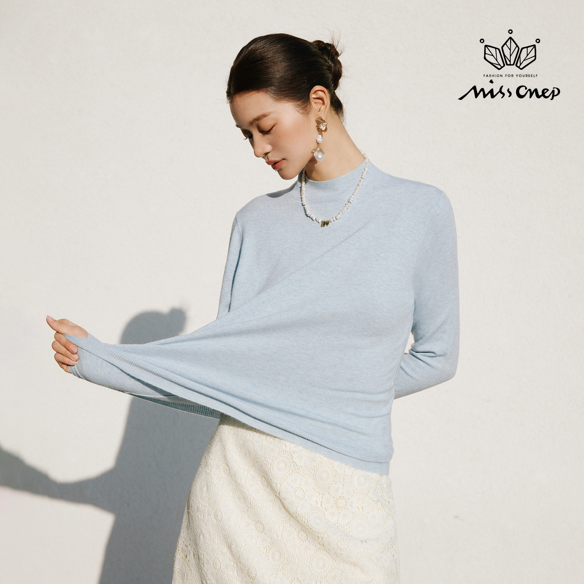 Missonep蝉【烟汀序】百搭款纯色系半高领套头针织衫女2025冬季