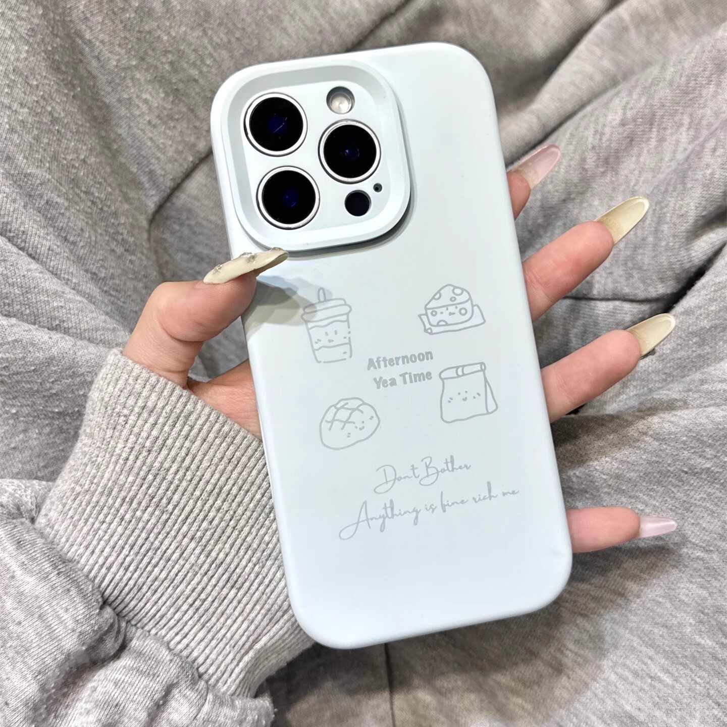 新天蓝色线条下午茶小蛋糕磨砂液态硅胶适用于iphone17promax苹果16手机壳15新款14pro女13全包12pm防摔软壳