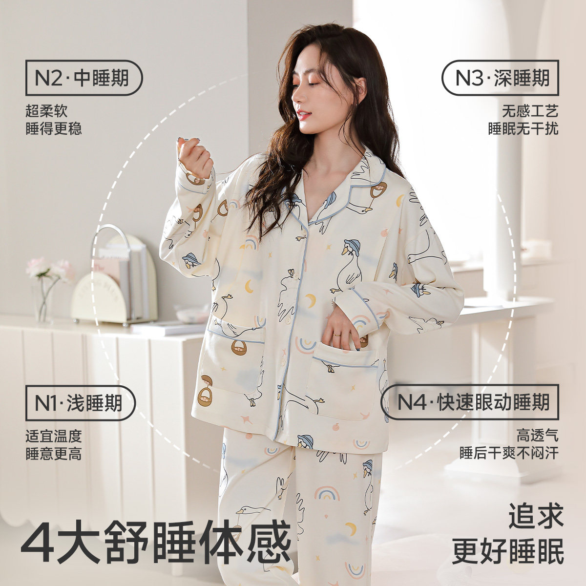 十月结晶兜兜鸭纯全棉吸汗月子服哺乳睡衣7A抗菌12月家居服女冬季