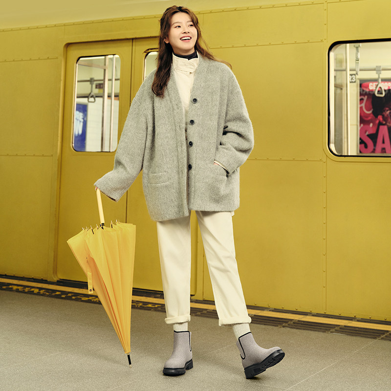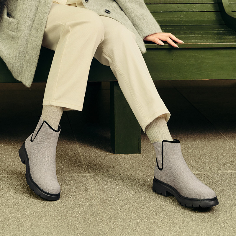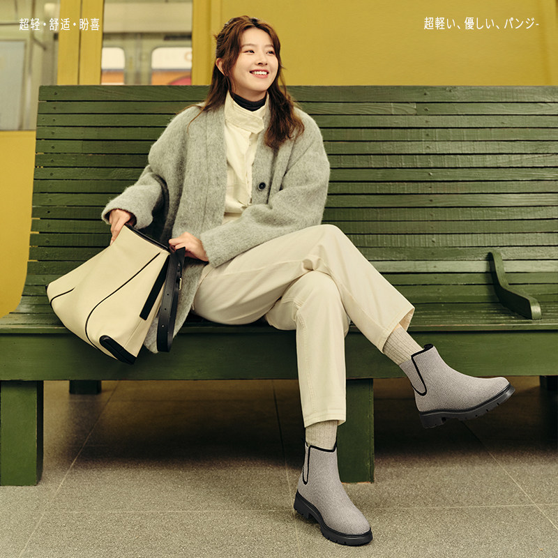 Pansy日本女鞋超轻舒适一脚蹬百搭坡跟飞织切尔西靴2025年新款