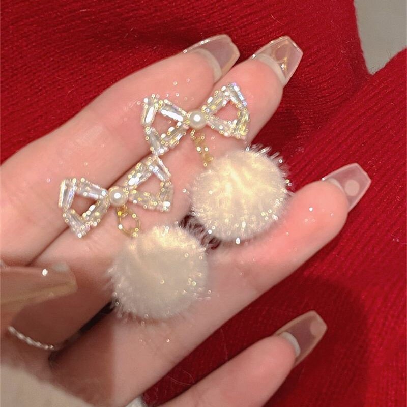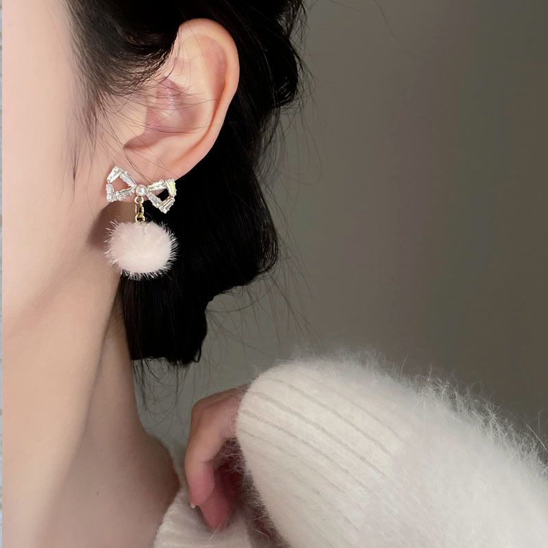 「半笼暖色」小众毛球毛绒耳环女秋冬简约日常耳饰设计感高级耳钉