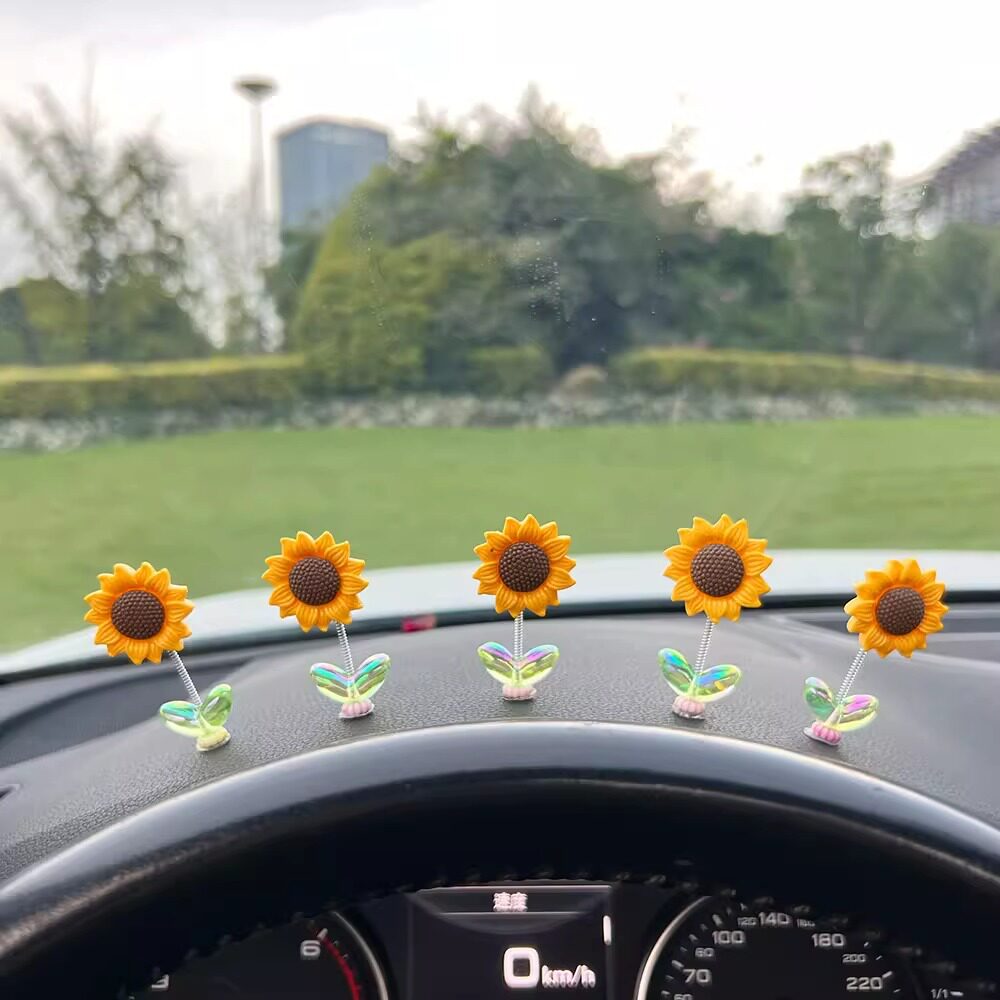 向日葵车载摆件网红创意可爱摇头清新花朵汽车中控台后视镜装饰品