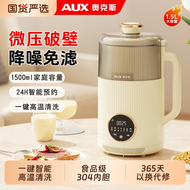 奥克斯豆浆机家用小型全自动多功能料理机五谷杂粮轻音破壁新款