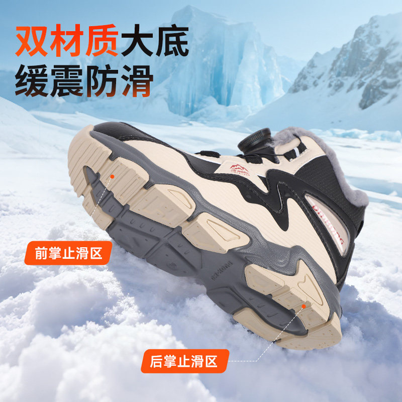 特步男童鞋2025冬季新款高帮加绒加厚保暖二棉棉鞋子旋钮扣运动鞋