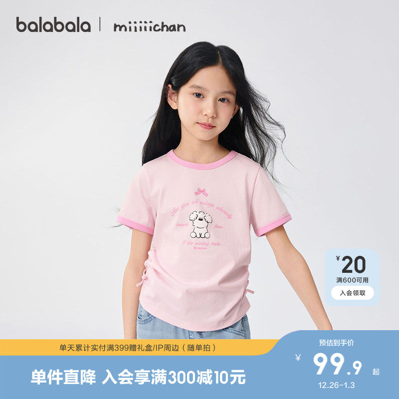 巴拉巴拉童装女童短袖t恤儿童2025新款夏装速干凉感上衣萌趣印花