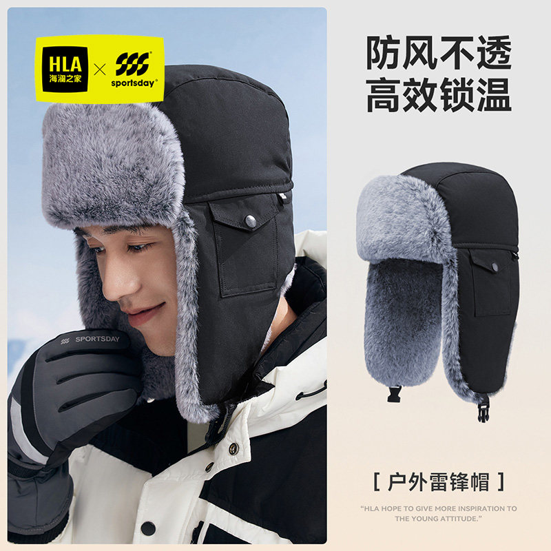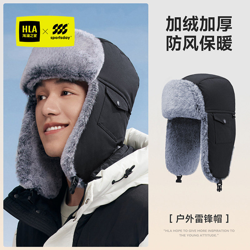 海澜之家雷锋帽男士2025新款秋冬保暖加绒加厚户外骑行防寒帽子潮