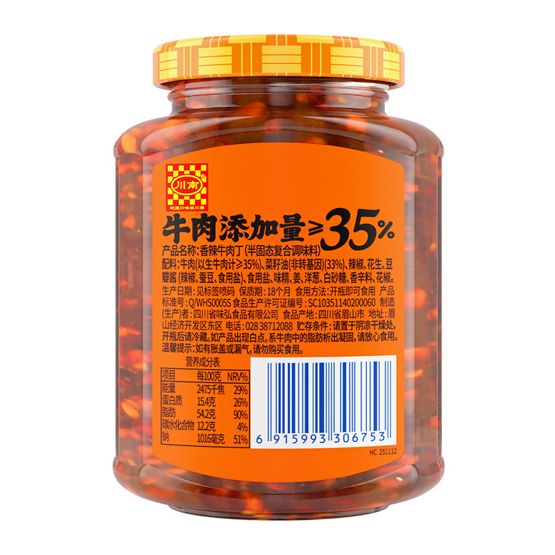 川南香辣牛肉丁181g牛肉酱下饭酱拌饭酱拌面酱下饭菜辣椒酱调味料