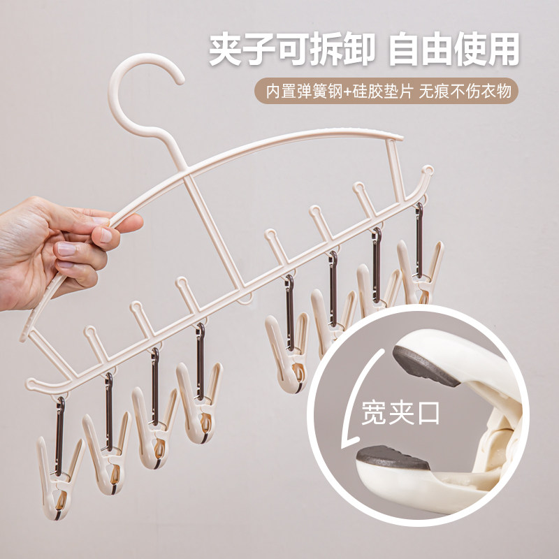 特粗晾袜子衣架多夹子防风家用不锈钢晾衣夹多功能挂钩晒袜子神器
