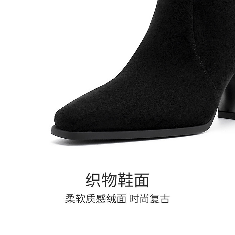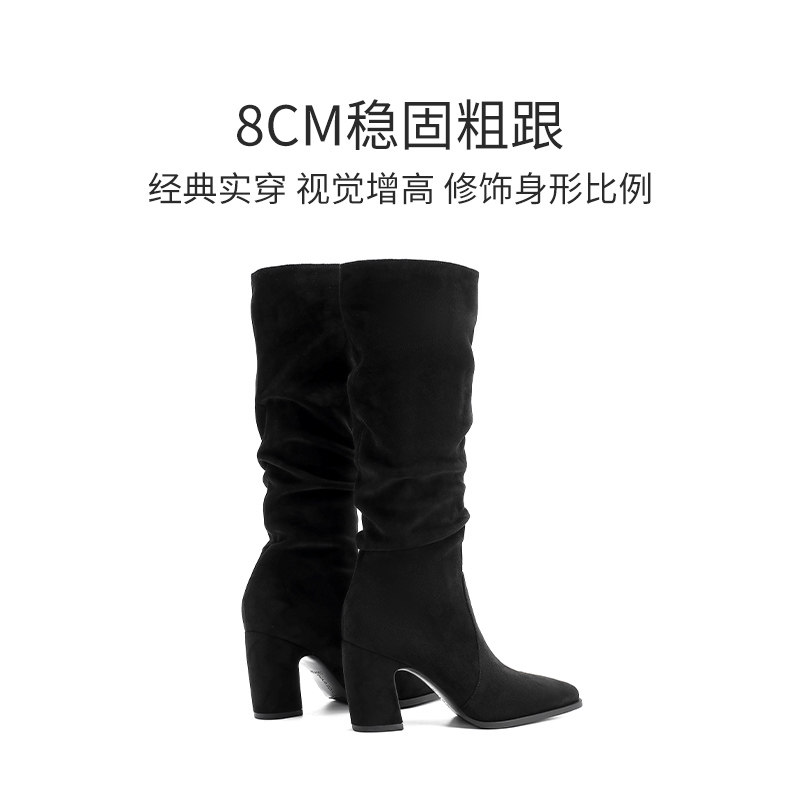 哈森粗跟长筒堆堆靴秋冬新款绒面瘦瘦弹力靴高筒靴HWA240133