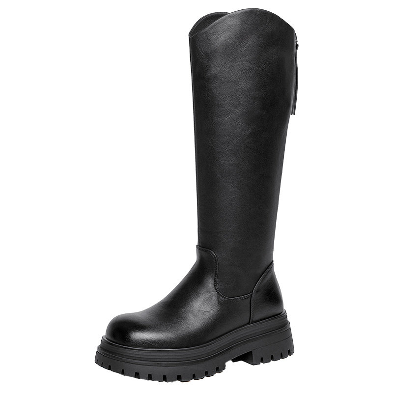 阿么手工女鞋真皮长筒靴圆头粗跟厚底增高骑士靴女柔软不累脚新款