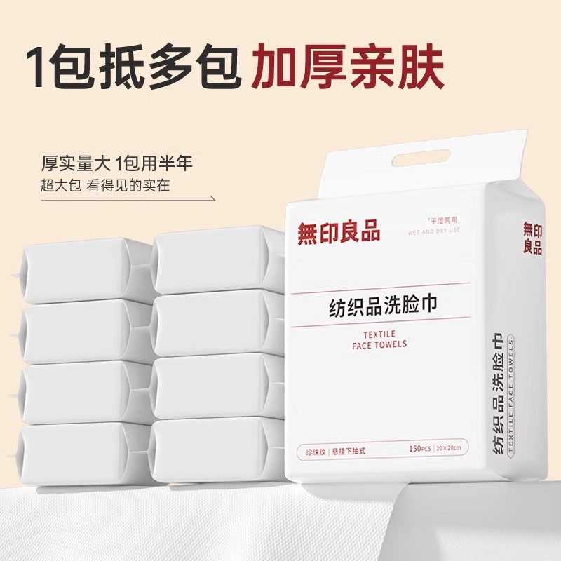 无印良品一次性洗脸巾悬挂抽取式加大加厚珍珠纹家庭装吸水洁面巾