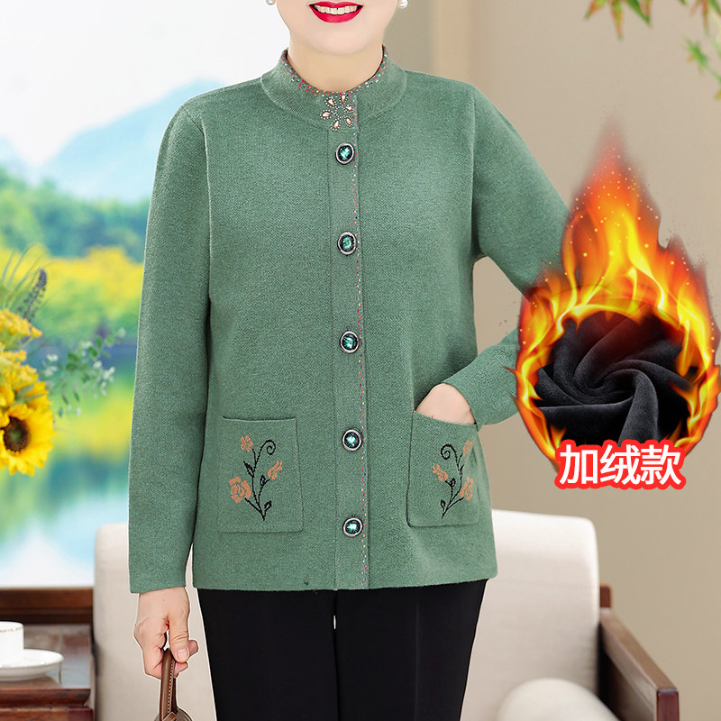 妈妈秋冬装一体绒毛衣洋气打底衫中老年人女加绒加厚保暖上衣套装