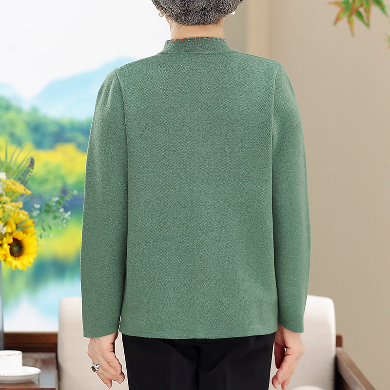 2025新款碎花针织衫上衣中老年女装春秋翻领打底衫妈妈秋装薄毛衣