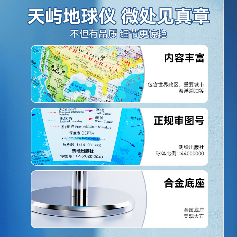 【天屿地球仪】1年免费换新 送地图+放大镜