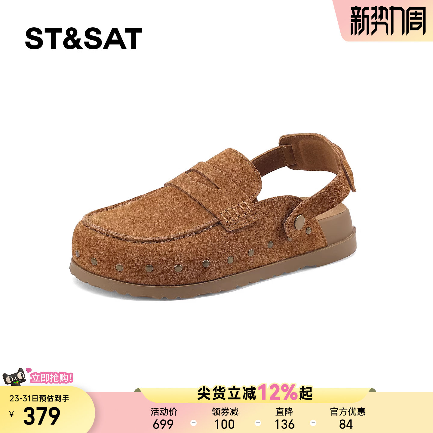 星期六复古勃肯鞋女2026春季新款松弛感包头铆钉内增高休闲懒人鞋