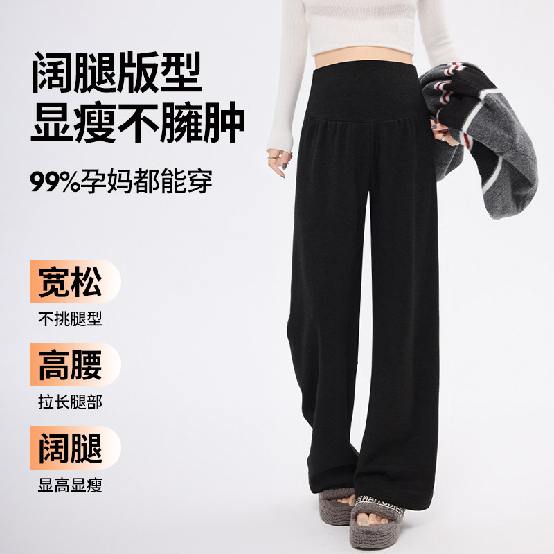 婧麒孕妇裤子秋冬2025新款外穿加绒厚糯米阔腿裤孕期不勒肚子长裤