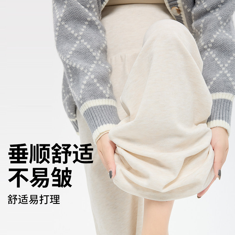 十月结晶孕妇糯米裤冬季外穿不勒肚阔腿松紧腰宽松厚运动裤小个子