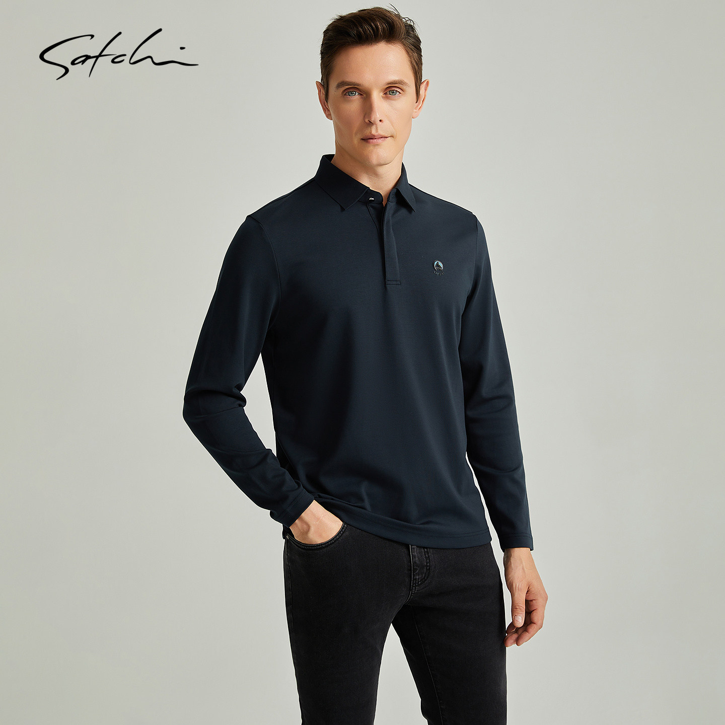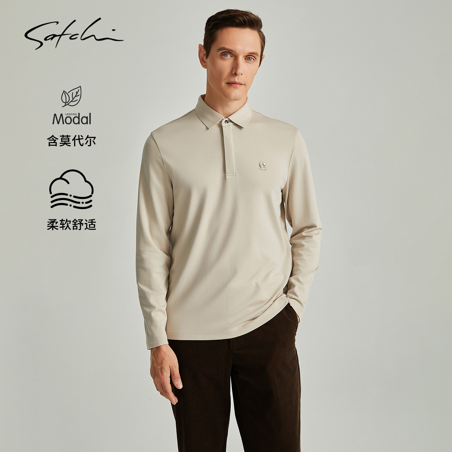 [莫代尔]SATCHI沙驰男装男士长袖POLO衫秋季新款商务打底T恤衫男