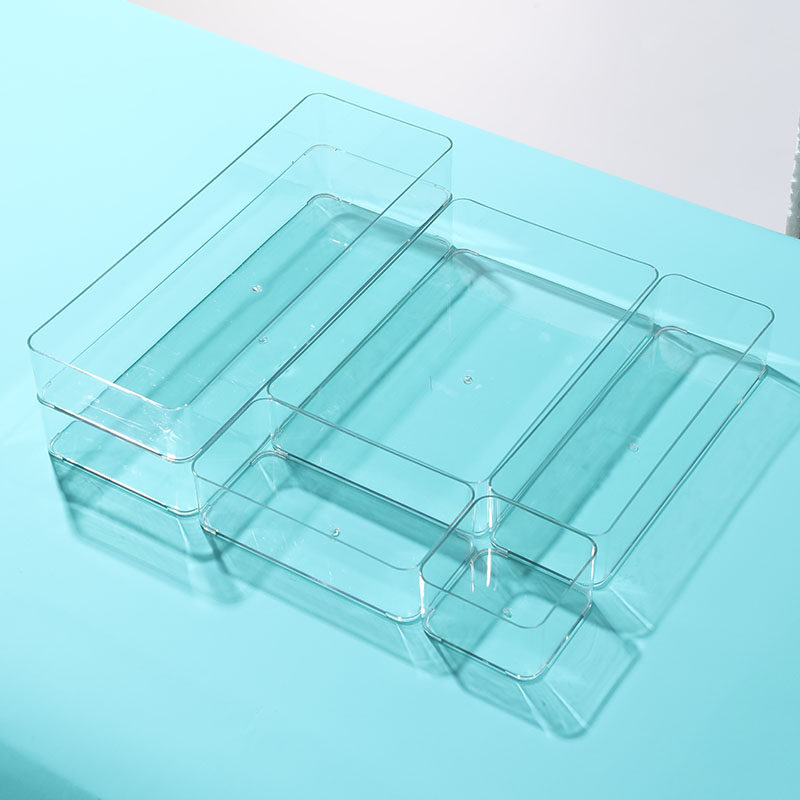 桌面宿舍收纳盒长条窄长型长方形亚克力透明杂物小物件抽屉分隔盒