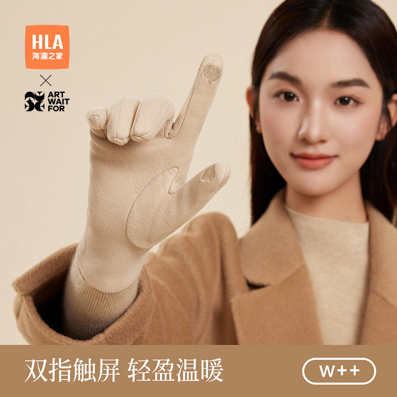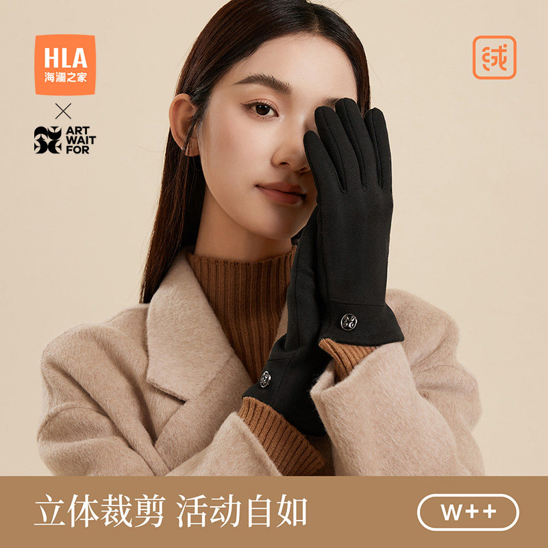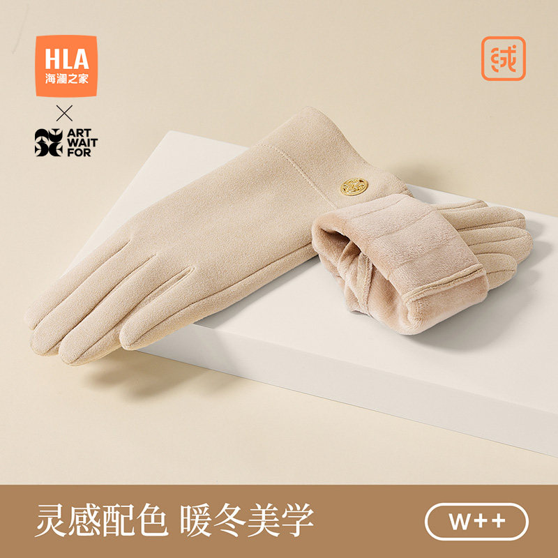 海澜之家布艺手套女士2025新款冬季御寒保暖骑行开车加绒加厚防滑